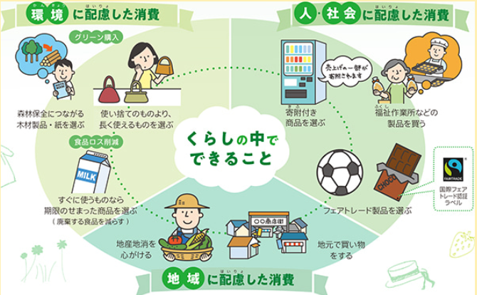人や地球環境、社会、地域に配慮した商品を購入・消費することをエシカル消費と言います。